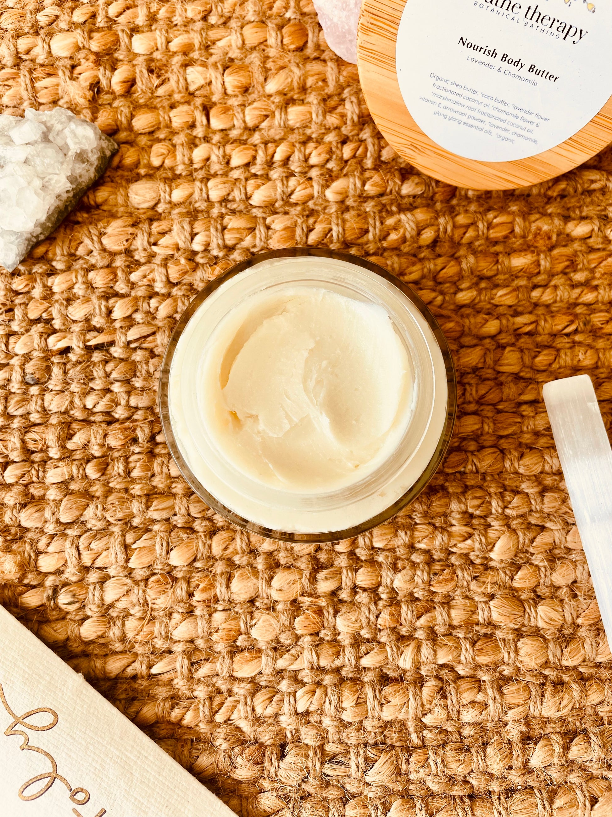 Whipped to a light, airy texture, our Nourish Body Butter melts effortlessly into the skin, delivering deep hydration without the greasy feel. A touch of arrowroot powder ensures a soft, fast-absorbing finish, making it perfect for everyday use—especially through the cooler months.